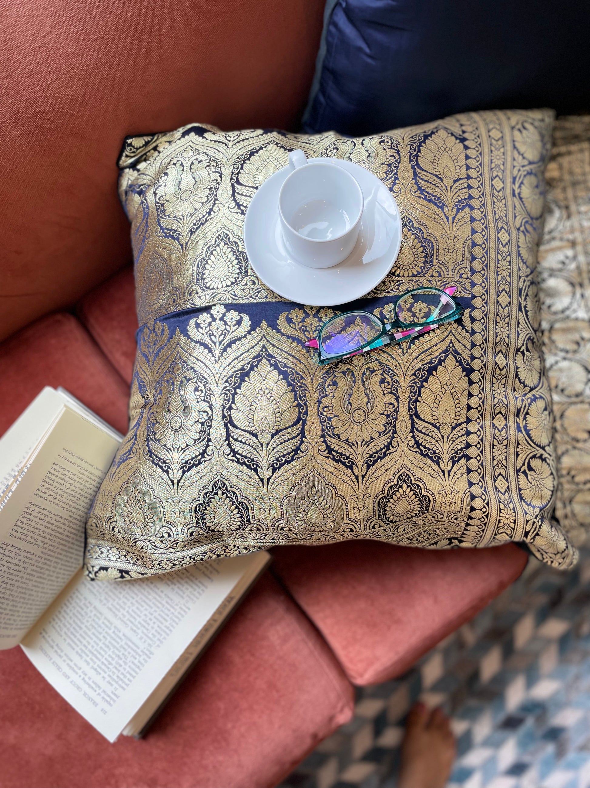 Add matching Cushion Covers (20” x 20”) made from the same Saree.